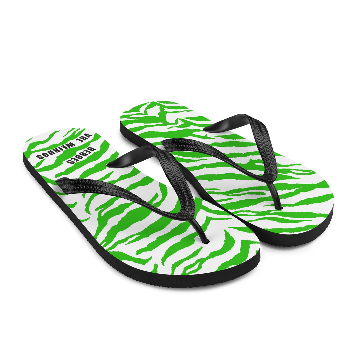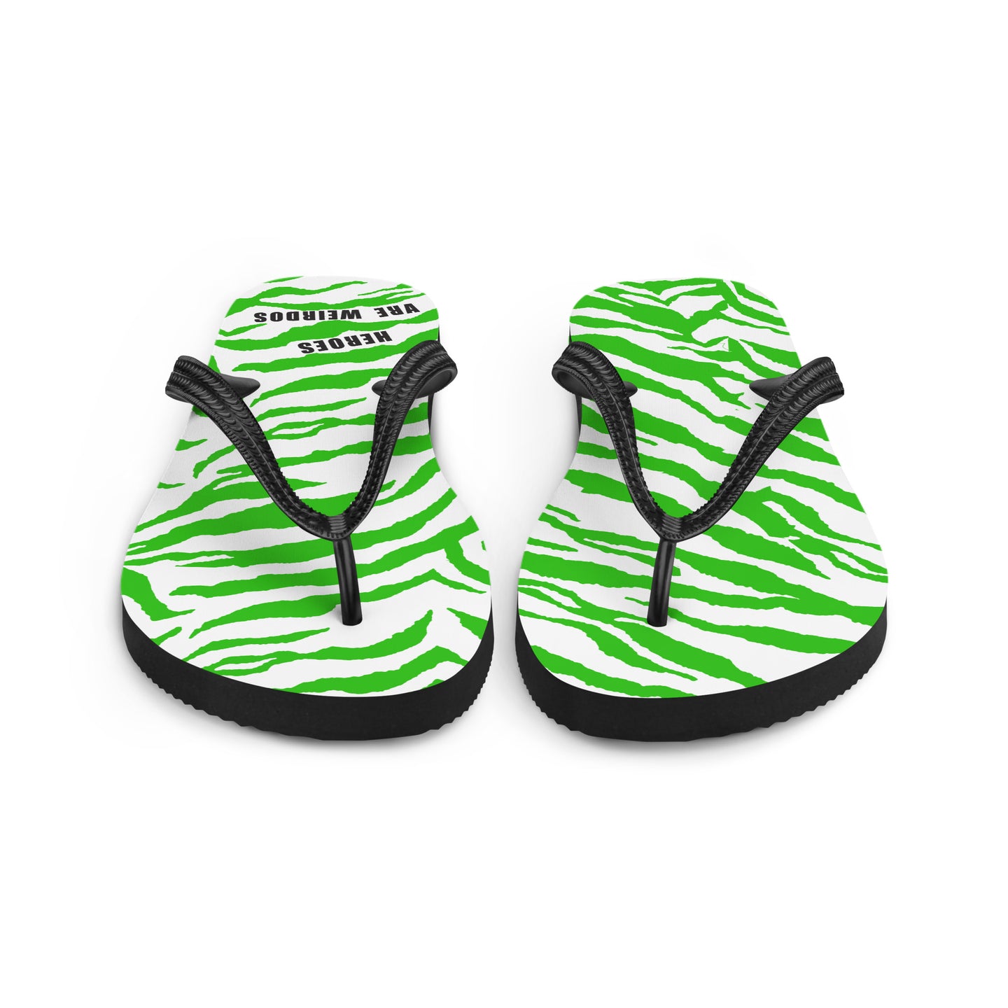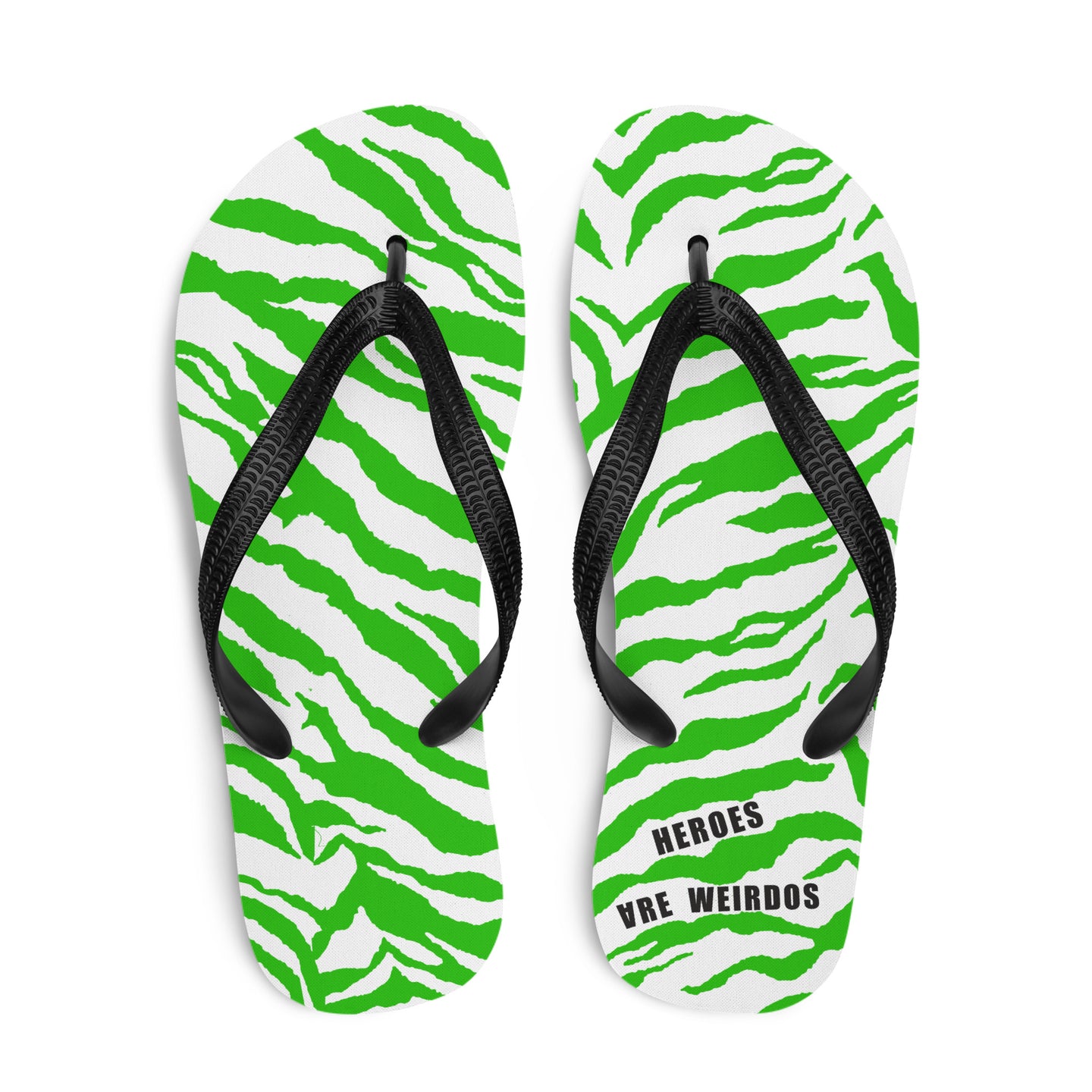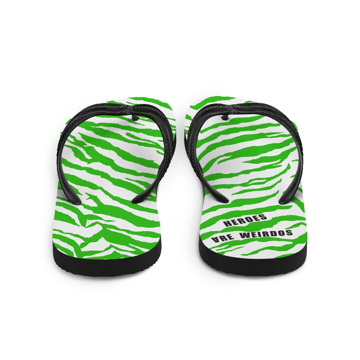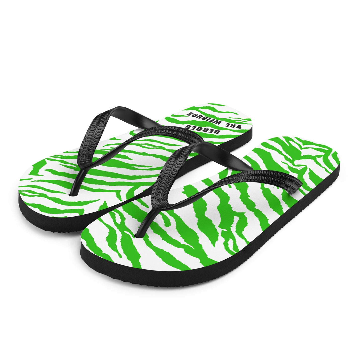 Heroes Are Weirdos Green Zebra print Flip-Flops.