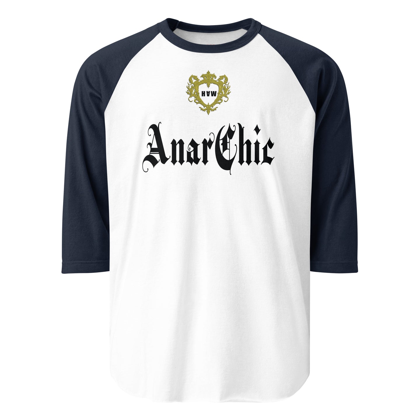 AnarChic 3/4 sleeve raglan T-shirt. Made in a soft combed cotton blend, it is comfortable and lightweight for all bodies.